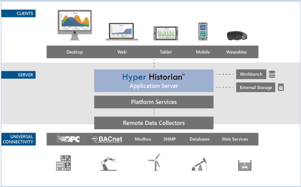 Hyper Historian is an advanced 64-bit high-speed, reliable, and robust historian. Designed for the most mission-critical applications, Hyper Historian’s advanced high compression algorithm delivers unparalleled performance with very efficient use of resources. Hyper Historian integrates with our ISA-95-compliant asset database and the latest big data technologies, including Azure SQL, Microsoft Data Lakes, Kafka, and Hadoop. This makes Hyper Historian the most efficient and secure real-time plant historian for any Microsoft operating system.